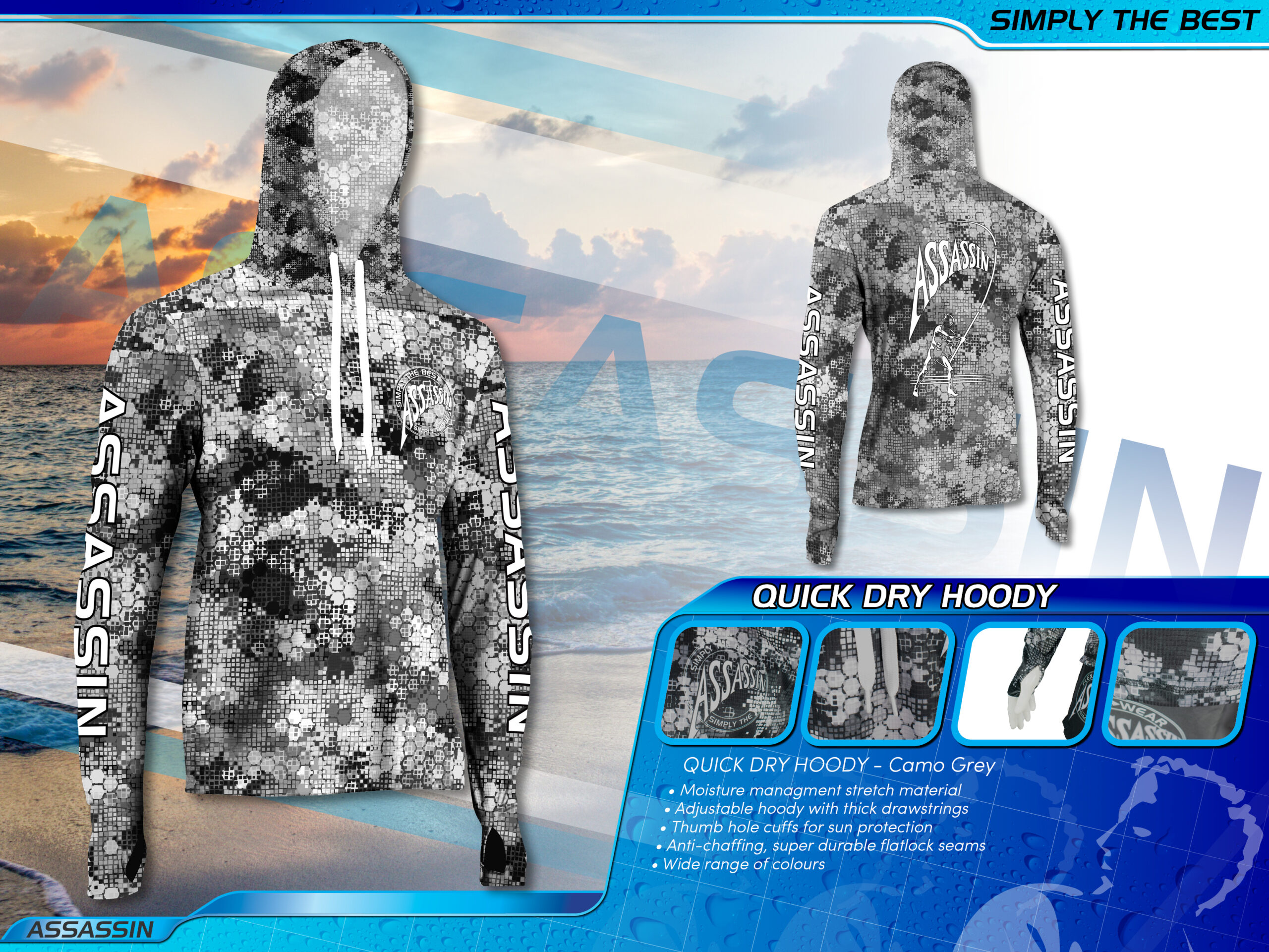 Camo Blue, Camo Grey, Camo Natural, Camo Pink, Grey, Marine